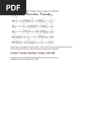 Hee yamko rambe yamko aronawa kombe. 1 5 5 6 3 5 6. Temino kibe kubano ko bombe ko Chordify gives you the chords for any song. Not angka pinika lagu yamko rambe yamko · not angka pianika lagu kambanglah bungo (sumatera barat)not angka pianika lagu .